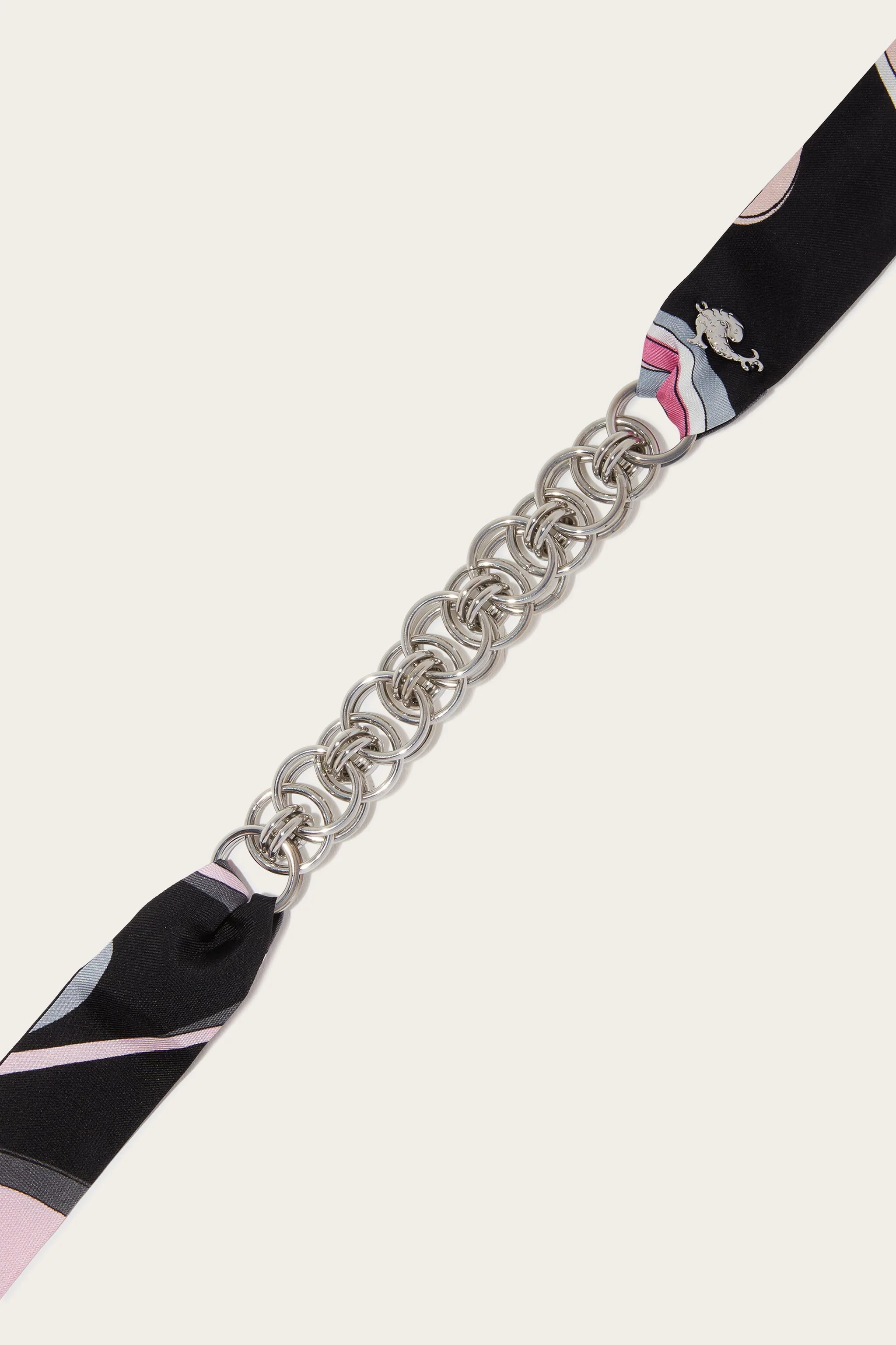 Un gioiello che racconta l'equilibrio perfetto tra artigianalità e stile contemporaneo. Questa collana combina una catena in ottone a due lunghi nastri di seta con l’iconica stampa Onde in rosa. Versatile e raffinata, si presta a molteplici interpretazioni: indossala come collana, annodala come cintura o lascia che i nastri danzino elegantemente su un abito. Ideale per aggiungere un tocco di colore e movimento al proprio look.
